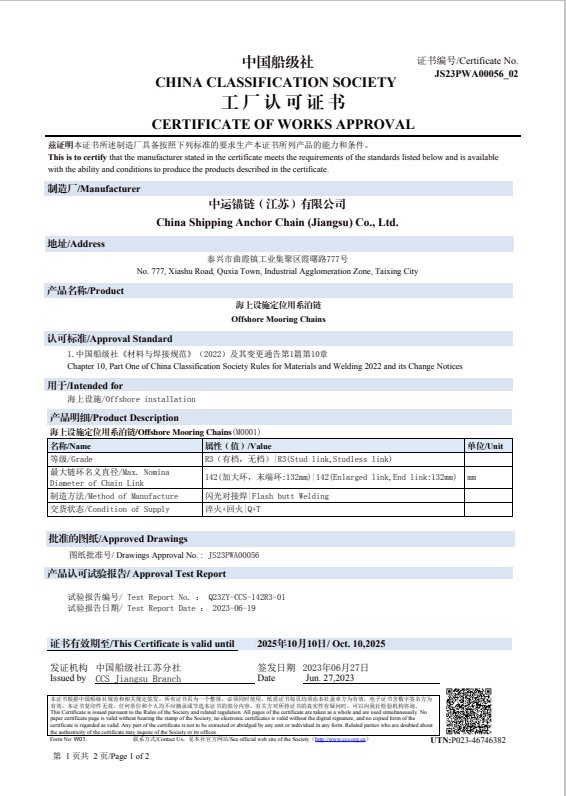 率先開發M4級錨鏈、 R7/R8級系泊鏈,打造完整而先進的產品體系。